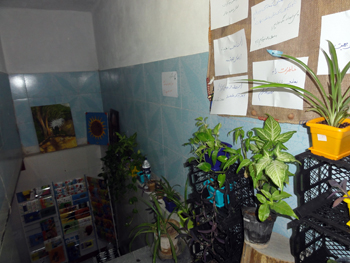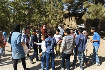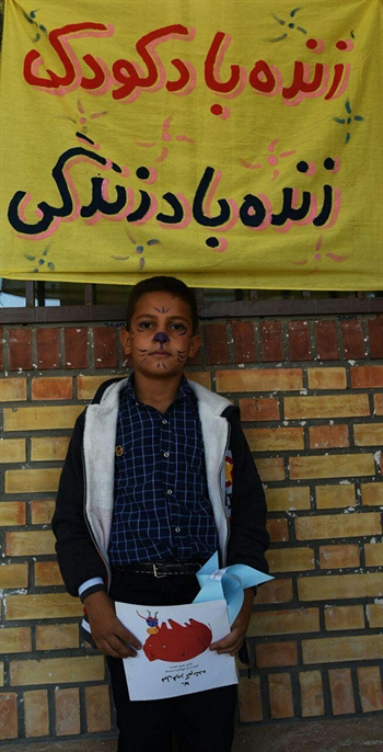همزمان گریم صورت کودکان، فروش کتاب و پذیرایی از آغاز برنامه در حیاط مدرسه در جریان بود. اهالی روستا (انجمن اولیا و مربیان مدرسه) شربت خنک، شیرینی و... آوردند برای پذیرایی.
