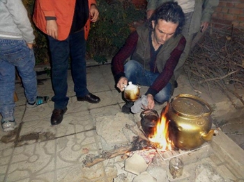 برنامه با سه ترانه یلدایی و روشن کردن آتش برای چای شروع شد. در ادامه حافظخوانی را داشتیم.