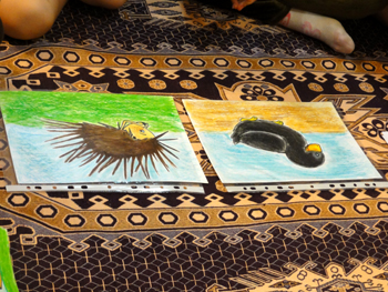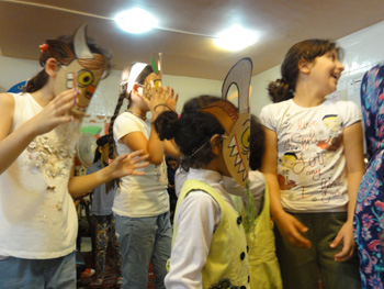 کتاب "سفر به سرزمین وحشی ها " به نویسندگی و تصویرگری آقای موریس سنداک، نویسنده آمریکایی و ترجمه ی خانم طاهره آدینه پور در این مرحله خوانده شد. با توجه به ماسک هایی که از قبل بر اساس تصویرگری شگفت انگیز کتاب توسط دوستان در جمعیت طراحی و آماده شده بود، کتاب خوانی باهیجان خاصی همراه بود.