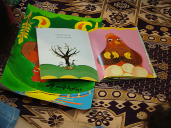 دایره می شویم و کتاب می شود عزیز و گل مجلس کودکانه یمان. کتاب" مرغ سرخ پاکوتاه"
