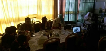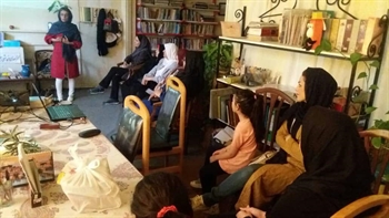 ما (اعضای جمعیت) همراه با کودکان دایرهوار نشستیم و در مورد قصه صحبت کردیم و قصه شروع شد.